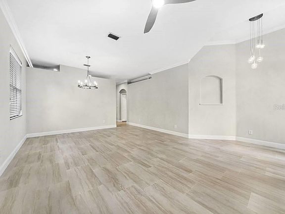 • Interior Features: Ceiling Fans(s), Eating Space In Kitchen, Open Floorplan, Stone Counters, Walk-In Closet(s), Crown Molding, Solid Wood Cabinets, Kitchen/Family Room Combo, Living Room/Dining Room Combo, Window Treatments, In Wall Pest System, Attic Fan
