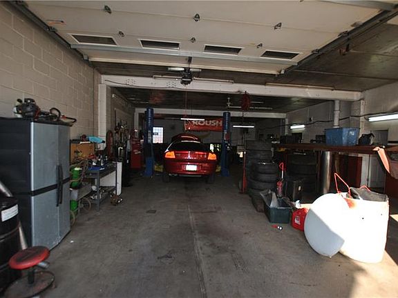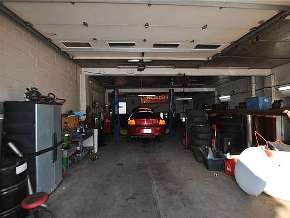 Large commercial building. Currently used as a auto repair shop with 6 bays and 4 lifts. High Ceilings and over-sized overhead doors. Reception area, 2 separate offices, 1/2 bath all in the commercial building. A number of improvements including newer metal roof, glass block windows, and furnace. Plenty of parking spaces in front and behind the building. Business available for purchase. Approximately 6,850 square feet. Think of the possibilities for all this space.