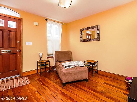 Large 1 bedroom, fully updated home in the heart of Butchers Hill, Baltimore's Friendliest Neighborhood. The living room & dining room are separated by a winding staircase which leads to a large bedrm suite with a large modern bath with stacked washer and dryer. There is also a small deck off the bath. Now, about the kitchen...it's Sweet!! Cherry cabinets, some with glass doors, very up to date!!