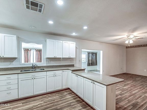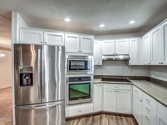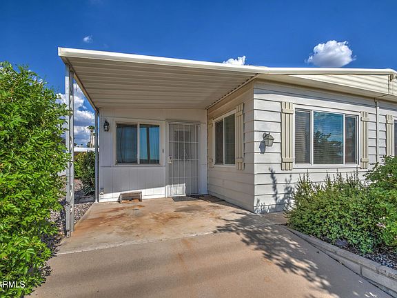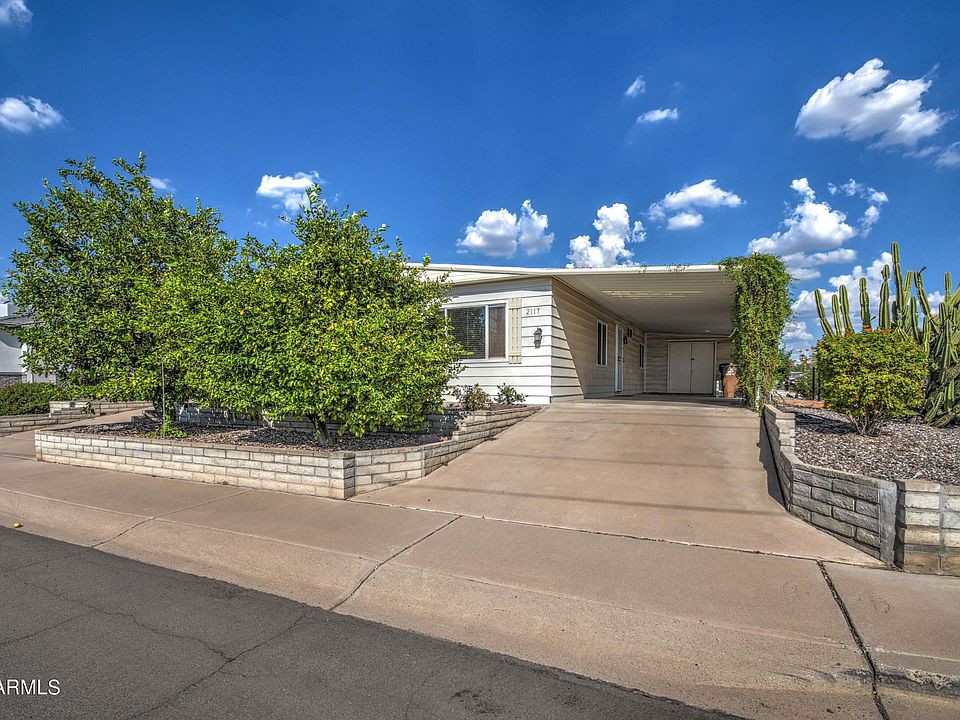 Move in ready 2 bed/2 bath located in the 55+ community of Apache Wells. Corner lot offers great curb appeal with citrus trees and rose bushes. Beautiful kitchen boasts breakfast bar, granite counters, soft close cabinets with pull-out shelves, glass cook top and a stainless side-by-side refrigerator. Open floor plan with living/dining room has a built-in desk or hutch. The spacious family room opens to a finished bonus room (included in sq. ft.) and extra storage room that has 2 large closets. Master has double closets and an updated master bath complete with large walk-in shower. Reflective paint on the roof and interior ceiling. The AC & water heater are approximately 5yrs old.