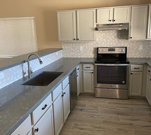 This 3-bedroom home has undergone a facelift with new flooring (carpet in the bedrooms, wood-styled tile elsewhere) painted cabinets, quartz countertops, a single bowl under-mount sink with a pull-out kitchen faucet, and a new backsplash. House has been professionally cleaned and is ready for you now. All stainless-steel kitchen and Samsung front-load laundry appliances are included. 2-car side entry garage with one bay long enough for a big vehicle. Close to shopping, dining, and less than 3 miles from 101 Hwy. Quiet well-established neighborhood; you'll love calling this one HOME! Application available online, Security Deposit equal to rent, $350 Cleaning Fee, $250 Account Set-up fee. The owner pays association fees and repairs. No smoking of any kind is permitted under the roof (which includes the garage area) and no street parking after 9 P.M.,