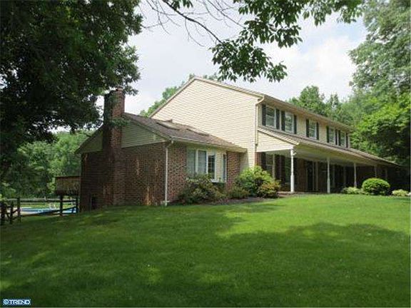 No need for a vacation home.....this 11 acre property offers the peace and serenity you're looking for. Sitting well off the road is an expansive 4BR Colonial built by local builder, Al Kutz, and has been meticulously maintained by the original owners. You'll love the Kitchen with it's Cherry planked hardwood floor and recent upgrades such as new countertops, tile backsplash, and new high-end appliances. Step down into the Greatroom featuring a huge Brick Fireplace, vaulted ceilings, and skylights making this a perfect place to relax after a long day. This level also has a formal Living Room, Dining Room, Office with built-in shelving/storage, Laundry Room, and (2) powder rooms. Upstairs is a large Master BR with walk-in closet, full bath with new flooring and double vanities, and an incredible, newly tiled, circular walk-in shower. There are (3) additional Bedrooms with ample closets, and a hall bath also with new flooring and double vanities. The basement adds an additional 970SF and consists of a Bar Room, Game Room, and Family Room with outside access to the back yard. There's a huge 50' x 10' Deck with all new flooring and rail system that runs the length of the house. From there you can make your way to the beautiful In-Ground Pool with new liner. The 2-car garage is oversized (26 x 21) and has an additional 10 x 10 space for your garden equipment. Oh, and don't forget, this is situated on 11(+) acres within close proximity to all major roadways, shopping centers, Limerick Outlets, and hospital. Make a point of seeing this special home!