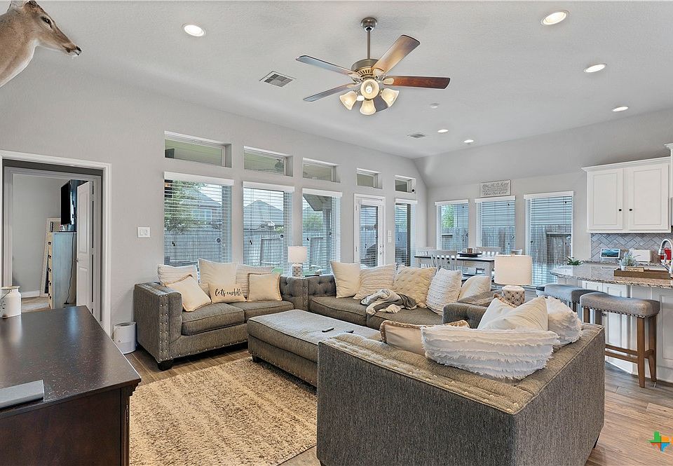 Natural light pours in through large windows, creating a warm and inviting atmosphere throughout. The primary suite is a true retreat with an enlarged shower featuring a built-in bench, a relaxing garden tub, and a double vanity. The modern kitchen and living spaces are complemented by white cabinetry throughout for a clean and elegant touch. Step outside to a spacious double-sized back patio, perfect for outdoor enjoyment, with no direct neighbors behind for added privacy. Don’t miss out on this exceptional home in a prime location!
