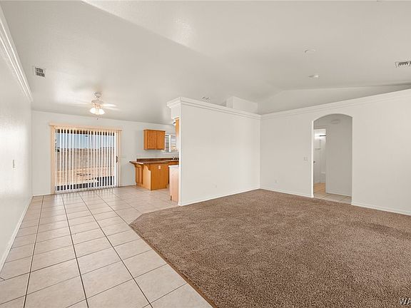 This lovely home is located off Hualapai Mountain Road near all the towns amenities, but yet a quit neighborhood. The front is easy to maintain with mature bushes and gravel. The backyard has a block wall to provide privacy along with a covered porch. Inside the home offers 1,620 sq ft of livable space with 3 generous size bedrooms, 2 full bathrooms and a 2 car garage. The living room has vaulted ceilings and opens to the dining area. The kitchen has a breakfast bar, lots of cabinets, pantry and white appliances. The primary suite is nice sized, along with an equally nice primary bathroom. The bathroom has dual sinks, walk-in shower and a large walk-in closet. The other 2 bedrooms are located on the other side of the house with a bathroom between them. The laundry room is inside the house right as you walk in from the garage. There is also lots of closets for extra storage, ceiling fans, and blinds throughout. Call your realtor today for your own private showing!