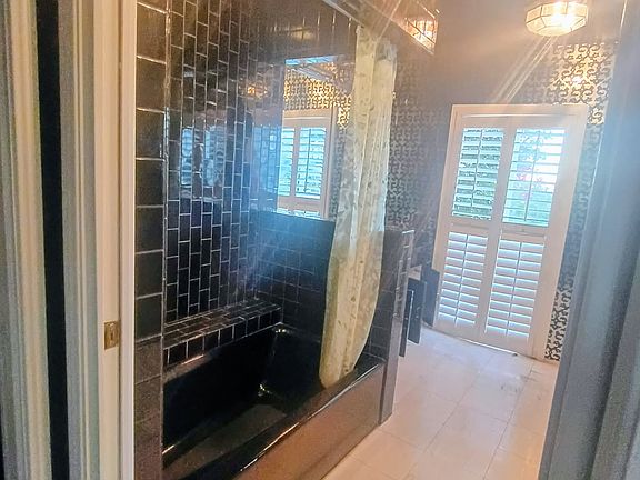 Lovely room with gold foil wallpaper.built in dresser and private bathroom in all black tile. Has vanity cove and balcony. 12 month lease required. 1 pet max. Smoke free house.