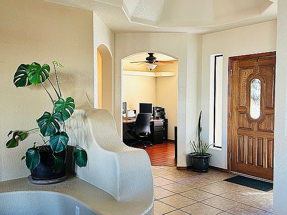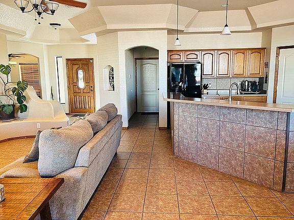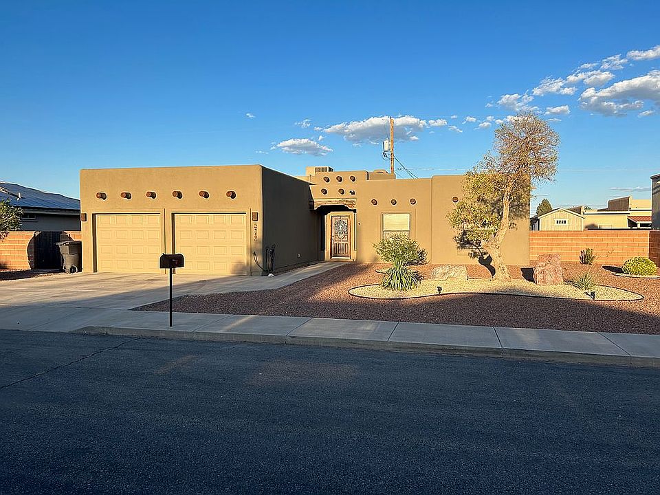 No detail was missed in this custom-built home. With 10 ft. tray ceilings and an open floor plan, it is perfect for family gatherings. Built in 2007, this solar powered home features 3 bedrooms, 2 full bathrooms, and a spacious office; perfect for anyone who works from home. The kitchen is equipped with a gas drop-in stove, built-in oven, microwave, dishwasher, refrigerator and a reverse osmosis filter system for drinking water. The sizeable walk-in pantry offers plenty of shelving as do the many oak kitchen cabinets. The living room has a standout gas fireplace and a custom built-in entertainment center. The overly sized master suite also features 10 ft tray ceilings. Inside the master bathroom is a jetted tub, walk-in shower, double sinks, and a spacious walk-in closet with ample shelving. For home security, the house is hard wired with an ADT security system. Also, anchored in bedroom 3 is a large Cannon 24-gun safe. A large two car garage is equipped with a Tesla Wall Charger, lots of additional storage space, and a work bench. Enjoy a nice evening on the back patio while you watch Netflix or the Sunday night game. Surrounded by mature oleanders and a plum tree, this well-equipped outdoor space is great for relaxing and entertaining. Features include a slate sidewalk and patio with a custom-built gas firepit and adjacent grilling area. There is also a custom-built gas firepit landscaping irrigation system, and a new 8x12 shed, built in 2022. Under the covered patio on the ceiling is a remote-controlled motorized flip-down TV mount, which can hold up to a 70" TV. The house also features a brand new 24 panel 9.6 KW solar PV system, installed in December of 2022. The house exterior was repainted in 2022 and a new silicone roof coating was applied in 2021. For sale by owner, no owner financing. I am willing to work with buyer's realtors. Contact Sarah at 575-694-2809 to schedule a tour!