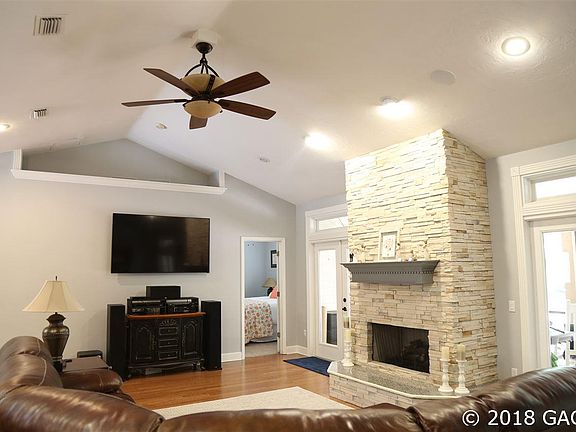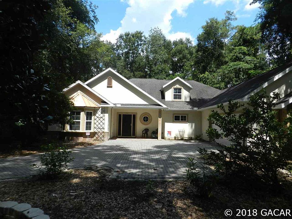 Exceptional energy efficient 4 bedroom 2.5 bath "Green Built home" in one of SW Gainesville's most unique neighborhoods. Madera is designed with the idea that people and nature can coexist. Short bike ride to UF, Shands, VA and all things central. Bright & open 3 way split plan surrounds the great room with high ceilings, a cozy fireplace, wood floors, surround sound system and formal dinning space. The kitchen overlooks the main room and offers a striking ceiling to skylight focal point at it's center, a large entertainment island, gas cook-top, built in ovens, solid counter tops, crown molding and walk-in pantry. Extra large owners suite has 2 closets, one huge walk-in with built-ins for "you know who". Bedrooms 2 and 3 share a jack and Jill & bedroom 4 is steps from the 1/2 bath in foyer. Screened in patio with gas hook-up for grill, TV and a low maintenance Florida friendly fenced back lawn complete this spectacular home. Don't wait too long to schedule a showing, homes in this neighborhood have been selling fast!