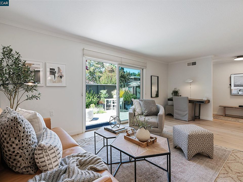 Modern Mendocino Model Retreat. Extensively and elegantly renovated, this level-in unit is where sleek design, functionality and tasteful upgrades come together in perfect harmony. Step into this peaceful retreat through the inviting courtyard adorned with lush plantings which provides beauty and privacy. An open floor plan maximizes space and light creating fluid living spaces. The engineered wide plank wood flooring is visually striking and abundant lighting is thoughtfully placed with 3 sky lights and recessed lighting throughout. The well appointed kitchen features a counter depth Miele refrigerator, Dacor induction cooktop, beautiful quartz countertops and soft close cabinets. Focal points of the spa inspired bathroom are a Grohe shower system, new vanity and lighted mirror. Convenience is the key with an in-unit Miele washer and dryer. Prime location: Near the Gateway Clubhouse, community amenities and entrance gate. Oakmont Entry 1. Carport 124-8.