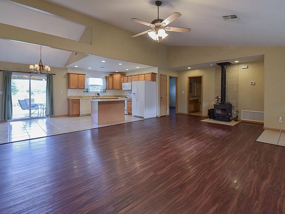 100% Move In Ready! Previous owners have taken exceptional care of this home. This property offers a 3 bed, 2 bath split floor plan with an open kitchen, dining, and living room. Living room has vaulted ceilings and a wood burning stove. Newer vinyl plank flooring throughout, brand new blinds, and the sellers have left you enough wood to heat the home all winter. Icing on the cake the refrigerator stays with the property. Backyard is fully fenced with a covered porch, fire pit, and a storage shed. This is a must see! Very clean and move in ready!