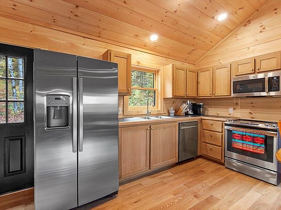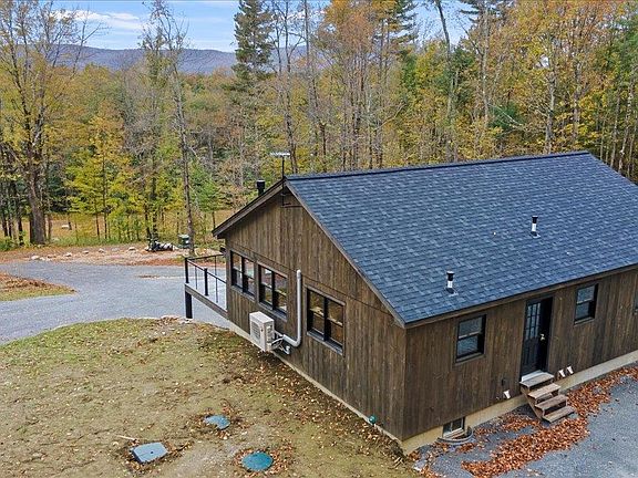 Brand new construction! Cozy cabin, nestled in the woods on nearly 10 acres. From the exclusive gated entryway, meander down a shared gravel road until your forested oasis emerges. Built as a single family home with a guest suite, designed perfectly for AirBNB or working from home undisturbed. You'll love the lightning-speed fiber optic internet! Upstairs main level is a cathedral ceiling great room surrounded by windows to bring in Vermont's beauty year round. Open concept kitchen, dining and living has custom built cabinets, stainless appliances, and dramatic lighting. TREX deck with SS cable railing adds living space in warm weather and shows off winter mtn views! Down the hall is a 1/2 bath, guest room with walk-in closet, and primary bedroom with 3/4 bath and laundry. Hardwood floors and porcelain tile baths upstairs, vinyl plank downstairs. Walk-out lower level has family room, kitchenette and 3/4 bath with laundry. Energy efficient mini splits for heat and central AC. Classic corner stove for backup on cold winter nights... propane fired with battery ignition, so it'll work even if the power goes out! Rinnai propane on demand tankless water heater. Drilled well, presby septic, new driveway & landscaping... the grass hasn't even grown yet! One car under garage, fully finished and heated, with an auto opener... awesome workshop or actually park your car inside! Secluded and peaceful setting, only 15 min drive to Bennington or 30 min to Manchester.