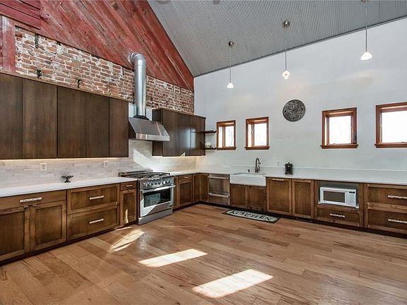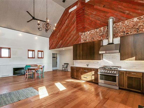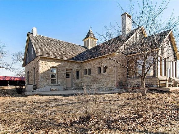 Welcome home to this one of a kind, stone farmhouse. This 4 bedroom, 3 bath, 2560 sf. home w/5 acres M/L & pond. Originally a carriage house, built in 1883 has undergone a professionally done renovation. Situated on the edge of town, the home provides countryside, pond views on one side & overlooks a private golf course on the other. Featuring; large, open chefs kitchen w/25' ceiling, fireplace, custom cabinetry, quartz countertops and stainless DCS professional-grade gas range, refrigerator & dbl. drawer dishwasher. The Mstr. suite incl. gorgeous tile bath; W/in shower, quartz soaking tub, granite top double vanity & limestone heated floors. The living room, 1/2 bath, 2nd bedroom, laundry & mudroom complete main level. The staircase takes you to 2 more bedrooms, full bath and another approx 600 sf space waiting for you to design for use. Imagine the possibilities; bed/breakfast, Airbnb/Vrbo opportunity. Out bldgs incl; barn, silo, garden shed & chicken coop.
