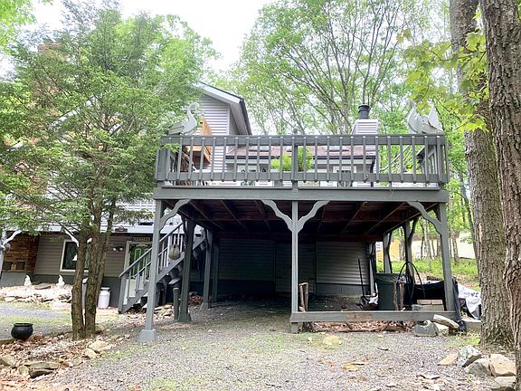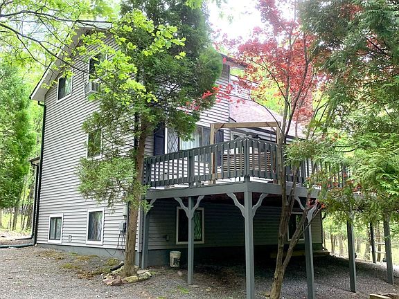 **MULTIPLE OFFERS-HIGHEST AND BEST DUE BY 7/15/2020 5 PM**Raised Three Story Contemporary in Pleasant Valley School District has 3 Bedroom 3 Full Bath home and is nestled in the beauty of this 1 Acre wooded property. Home boasts a Large Family Room with Beautiful Stone Fireplace.,Sliders to the Large Deck and Skylight. Lower level has a finished space that can be used as an exercise or game room or additional living space. Main Floor has an Open concept Kitchen and dining area with 1 bedroom and a second floor with loft and 2 bedrooms is convenient for your family home or second home. The sliders lead out to a beautiful deck where you can sit and enjoy nature or perfect for entertaining. All in a low tax low dues community.