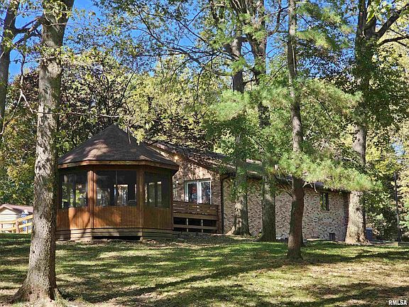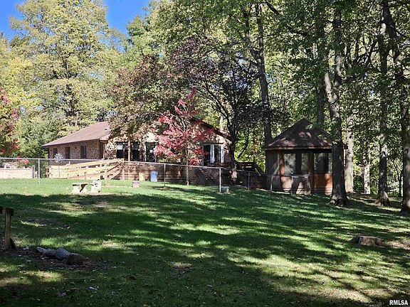 Eleven wooded acres less than 10 minutes from Jacksonville! This four bedroom ranch sits at the end of a beautiful driveway in rural Woodland Lake Estates. Home is all brick, has a huge wooded yard, walkout basement, deck with fenced area, and screened gazebo, detached three car garage with shop, lean to, and pole shed. Home features main level master bedroom, skylights, fireplace, large main level utility and laundry area, breakfast nook, wood stove and more. Call today to see this beautiful property.