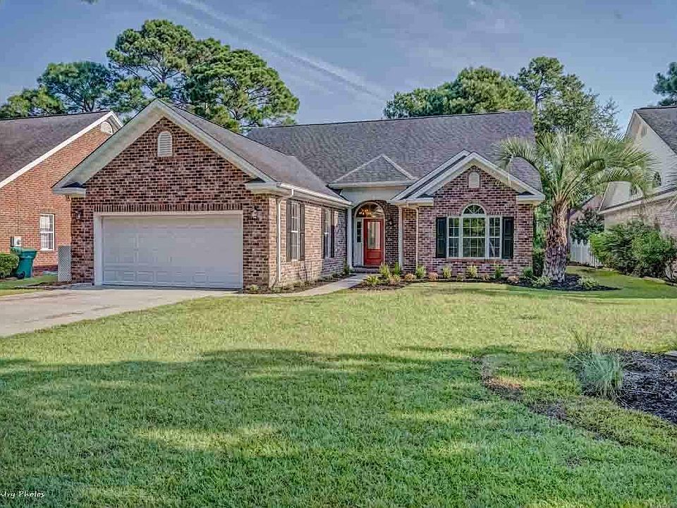Great all brick traditional home in beautiful Prestwick, a gated golf course community near the beach, shopping, dining and activities. Spacious and open floor plan all on one level. Gorgeous upgraded interior features to include: beautiful hardwood laminate flooring throughout the foyer, dining room, living room and Carolina room. Oversized tiled kitchen and baths. Brand new carpet in the bedrooms. Granite countertops in kitchen and baths. Open gourmet kitchen with eat-in area and breakfast bar leading to the terrific brick wall screened porch. Loads of overhead storage with 2 access points, closet space and double pantries. Freshly painted and ready to move in. Prestwick Golf Course is a Pete Dye Design. Homeowners enjoy access to tennis stadium and Jr. Olympic sized pool. Award winning Lakewood Elementary School. All measurements are approximate and not guaranteed. All square footage measurements must be verified by the Buyer or Buyers Agent.