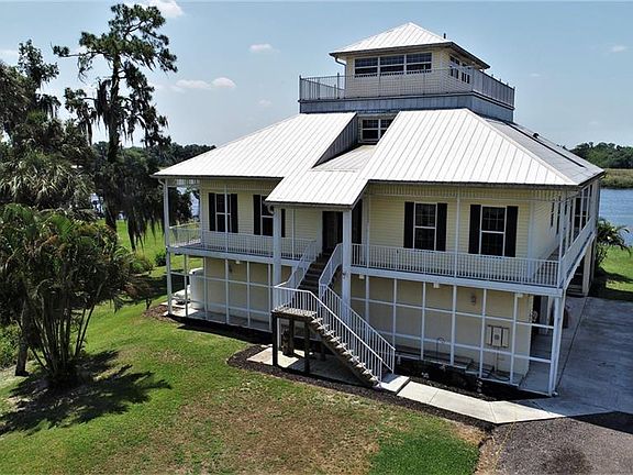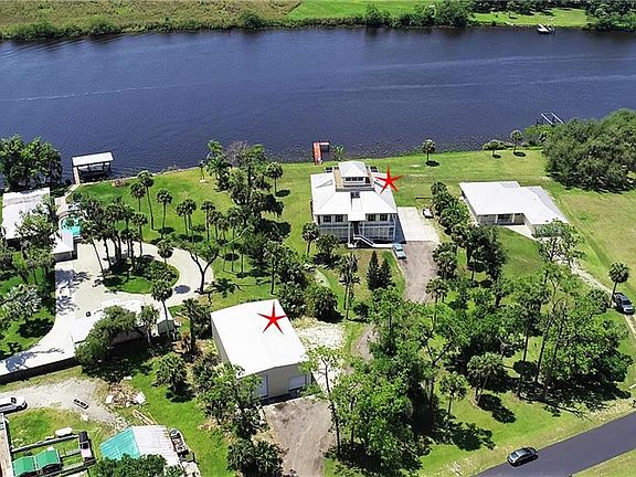 RIVERSIDE AT ALVA Featuring a large Estate pool home on the intracoastal river. True Florida style home with a 360 wrap around porch. Have a large boat & RV? Look at the 60x40 detached garage with a 16' high door. The home is built with solid concrete construction, even the second floor & walls. Features include; travertine throughout, gas range, reverse osmosis system, tankless water heaters and an updated ac system. This property will accommodate your boat, large or small, just pull up at your personal dock on the river and enjoy. There is a newly upgraded two story screen cage covering the pool / spa area. It also has a fire sprinklers system. With 4+bedrooms & 3.5 baths, there is plenty of space for your family, plus a few friends. The ground floor has a living room, bedroom/bathroom, and a large bonus room. From the great room you can enjoy amazing views of the yachts navigating the intracoastal waterway on the Caloosahatchee. This home can accommodate a large family plus more and is within walking distance to the Alva elementary, middle school and boat ramp. The walls and flooring are solid concrete on both the first and second floors.