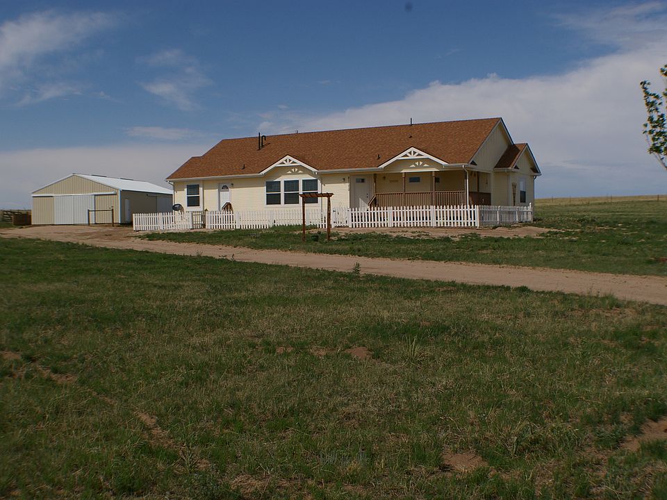 Lovingly cared for one owner home on 35 Acres! Built in 2006, this home has all the amenities of New! Huge master bedroom with attached oversized five piece bathroom. The kitchen is large and open with counter bar and island, and tons of cabinets for storage as well as a pantry and lots of recessed lighting. Dining room is adjoined with a walk-out to smaller deck for outdoor enjoyment. Great views of the Front Range and the Sangre De Cristo range from the covered front porch. Huge 2400 SqFT Barn. Zoned for Horses!!! Call Jeff Gaddis for more info 719-439-7647