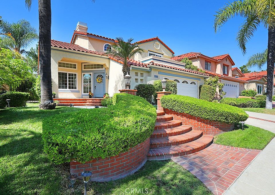 PRICE REDUCTION in Pinecrest!!! This is one of the most desirable neighborhoods in beautiful Mission Viejo. This open floor plan home sits on a cul-de-sac street with incredible curb appeal! How about a fabulous sunset view every night? Step into the backyard and take advantage of the Southern California lifestyle. Upon entering, the natural light brightens this home with warmth and charm, illuminating the vaulted ceilings in the living and dining room area. You are immediately wowed by the dramatic cathedral ceilings and the lovely staircase, and the first of three fireplaces. Imagine spending your evenings watching the sunset on your large backyard patio, or viewing the sunset each night from your primary bedroom’s private balcony! The home features three bedrooms (one bedroom downstairs) and 3 bathrooms. The downstairs room is an ideal office space, gym or third bedroom. The family room contains another warm and inviting fireplace. From the cheery, light and bright kitchen you can gaze out to the backyard, or into the family room. The kitchen boasts a Viking cooktop, walk-in pantry, granite and a Kitchenaid double oven/microwave combination. Upstairs you will find a wonderful primary suite with vaulted ceilings and an ensuite bathroom; two huge walk-in closets, dual vanities, a third fireplace, and a private balcony. The other upstairs bedroom is also, an ensuite with a full bathroom, walk-in closet, and another balcony; this one facing Saddleback mountain. This home also has- newer Milgard windows and sliders, plantation shutters, gorgeous real hardwood floors, custom baseboards, tons of great storage, and a little extra space in the garage. Mature trees surround the house. The greenbelt behind the backyard gives one a feeling of tranquility and openness.