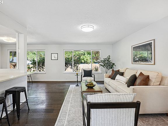 Fantastic one-level ranch home with many recent updates just waiting for you to move in! Engineered hardwoods throughout. The great room footprint with oversized windows allows for natural sun-drenched spaces and a warm ambiance. The living room and dining room are both open to the brand-new kitchen featuring granite counters, SS appliances, an island with an eating bar, and a pantry. Relax in the cozy family room, complete with a wood-burning fireplace and slider access to the backyard. The primary bedroom has plenty of closet space with double closets and an ensuite bath. The other two bedrooms share the second full bath with a beautiful tile floor and soaking tub/shower combination. Entertain in your fully fenced backyard with a slab patio for dining al-fresco, and a flat-level yard with garden areas ready for your personal touch. BRAND NEW interior paint, stainless steel kitchen appliances, kitchen counters, locks and internal hardware, lighting, and flooring in all bedrooms. NEWER Presidential roof, gutters, doors, furnace, air-conditioner, hot water heater, and exterior paint. Two-car garage. Convenient to the Tualatin area groceries, restaurants, coffee, and EZ access to freeways.