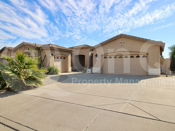 Available Now! 2,050 SQ FT! 3 bedroom, 2 bath home with a charming one-story floor plan in Queen Creek. Home opens to a large living/dining room, great for entertaining! Kitchen boasts ample cabinetry, granite countertops, a breakfast bar, and included appliances! Ceiling fans and blinds throughout! Lovely 3 bedroom home coming with carpet and tile flooring in all the right places. Primary bedroom offers an ensuite bathroom with dual sinks, separate shower/bath, and an expansive walk-in closet. Laundry room with included washer/dryer. 3 car garage! Covered patio for relaxing outside, charming landscape in the backyard! Convenient Queen Creek location, close to shopping, schools, and restaurants.