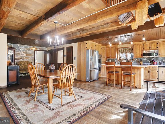 PRICED BELOW RECENT APPRAISAL! Welcome to Manheim Farm - a 32+ acre equestrian estate bordered by Little Beaver Creek and offering an updated and repointed stone bank barn with cedar lined heated tack room, 6 over-sized matted stalls, and metal roof (2002), and loft with 3 mows and double floor. There's also an 110 x 180 riding ring with black sand and lighting and two run-in sheds - one with water and electric. The house boasts a tastefully updated kitchen with cabinets made from chestnut from the barn, corian counters, island with maple top, double Viking ovens and stainless steel appliances. Many full windows surround the kitchen and dining area with exposed chestnut and mahogany beams and offering an enjoyable view of the pastures. Upstairs offers a master bedroom with wood stove, two other bedrooms, open loft and exquisite bath with hickory floors, walk-in closet, double sinks with granite top, ceramic tile floor and shower and wainscoating. The third level offers another bedroom with exposed stone walls and an unfinished attic room for plenty of storage. Original part of the house is floored with wide plank pine. There's 5 heating/air systems throughout the house and shops- 4 heat pumps, and one hot water baseboard high efficiency oil furnace plus a mini split. After a day's work on the farm you'll enjoy a dip in the salt water inground pool (with new liner and sand filter this year) or relax on the spacious slate patio. There's plenty of place for working or storing equipment and materials in the 2-level shop which has an office above, 1/2 bath, 2 zoned heat pumps and 1-car garage or in the separate machine shop. Backing to Greenbrier State Park and walking distance to the Appalachian Trail makes this property complete for the nature lover. This is a one-of-a-kind property in the heart of rural southern Washington County.