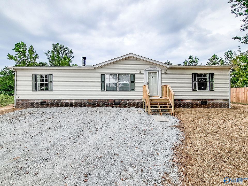 Very nice 3bd/2ba home with LVP throughout the living areas. This is a double wide mobile with a permanent foundation. This home features an isolated suite on one end and 2 guest rooms on the other end with living room, kitchen dining room featuring and open concept.