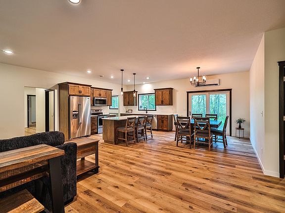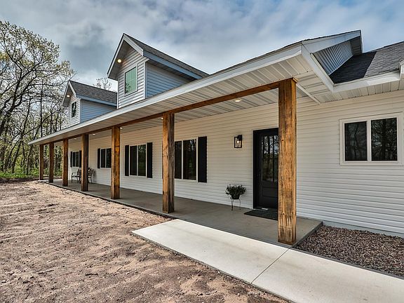 FOUR BEDROOMS! This new construction, 4 bedroom, 3 bath home is settled on 6.95 pristine acres. Enjoy the peace and quiet on the large, front porch overlooking the neighboring fields. The property has space for a dream hobby farm and a detached garage, while the attached garage has space for a work area, creating plenty of possibilities for anyone. Inside, there is a mudroom entrance from the garage, a half bath for guests, quartz countertops, and a walk-in pantry. The primary suite features separate vanities, enclosed shower/toilet room, and a large walk-in closet. The other side of the home has 3 bedrooms, bathroom, family room/toy area with storage closet, and laundry room, making it easy to close off the mess when guests are over! The home and garage have in-floor heat, with separate zones, for easier temperature control. This dream home is conveniently located just 3 miles from town, giving you the tranquility of country living with easy access of quick trips to town.