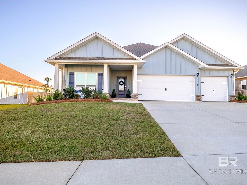 Welcome to the Destin Plan with 3-CAR GARAGE in fast-selling, golf cart friendly Fairhope Falls! Walk or ride your golf cart to the community pool overlooking a large lake with spectacular views! This like new 4 bed/ 3 bath home features a split, open concept floor plan with soaring 9'-12' ceilings and plenty of natural light. The Gourmet Kitchen boasts granite countertops, painted cabinets, built-in stainless steel appliances with cooktop and vent hood. Spacious Primary Bedroom suite features dual vanities, Garden tub, separate shower and large walk-in closet. Luxury vinyl plank flooring throughout. NO CARPET! Backyard has been fully fenced in and home has a full gutter system. Seller has added custom lighting throughout and has screened in the back porch. Brand new and energy efficient, this 'Smart Home' comes with thermal doors, Energy Star rated double pane windows, and a 14 SEER Carrier Heat Pump. A 10-year structural warranty is also included. Home is built toGold FORTIFIED HomeTM certification, which may save on annual homeowners insurance. Conveniently located off Hwy 104, Fairhope Falls is just minutes from charming downtown Fairhope, shopping, restaurants, award-winning schools and close to the beautiful whitesand Gulf beaches. One-of-a-kind community amenities include TWO resort-style pools, playground, and two lakes. This beautiful neighborhood has it all and this home is a beauty! Call today to schedule a showing! Buyer to verify all information during due diligence.