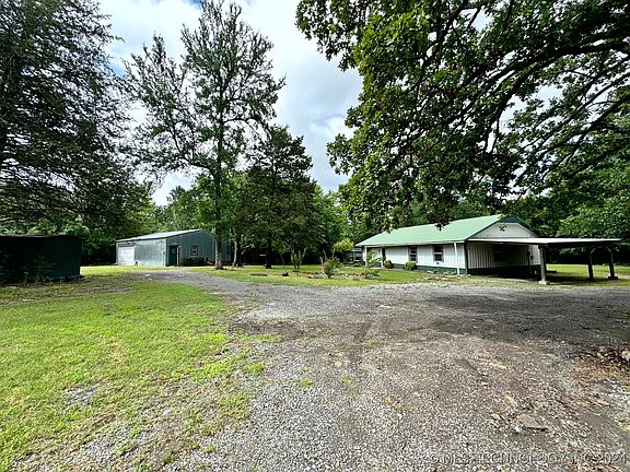 Tucked off the main road down the long drive, find this 2 bed, 2 bath home w/many updates. Central HVAC upgraded 7-8yrs ago, dishwasher replaced in 2020, updated flooring & a hot tub. As you enter the home find a large wood stove & new carpet in the spacious living room. Split floor plan w/ the primary suite off the living room. Kitchen/dining features built in shelving & updated lvp flooring. The second bedroom & bathroom have updated lvp flooring as well. Extra large utility room w/ laundry & entry from the side patio. Side patio features a hot tub w/cover replaced in 2022, an enclosed raised bed garden area, arbor & old well house used for garden storage. Home & roof have bene covered in metal siding for durability. Covered parking is available via a carport. Across the stone path find a 30 x 30 shop with 220v electric, automatic garage door & workbench. Across from it is a small portable building & then a 10x10 metal shed. Property is on Rural Water, Fiber Optic Internet Available & nat gas line if you’d like to add it. Home is surrounded by 14.5 acres m/l of wooded land w/ a wet weather creek along one side. Just a short distance to Lake Tenkiller via several accesses. Nestled between Pettit Bay and Cookson Bend, it’s a quick boat ride to goat island. Move in and enjoy the private, peaceful oasis for rest & relaxation then head to the lake for sun & fun! All appliances & hot tub available with agreeable terms.