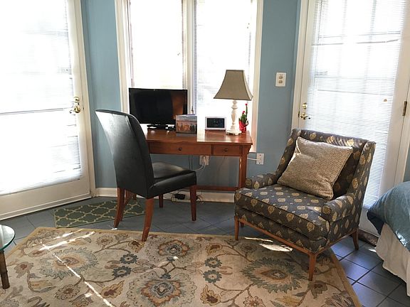 Available for stays from 1 to 3 mo $1700/mo includes all utilities, WIFI, maintenance. Optional off-street parking. DESCRIPTION: Beautiful private guest suite with cathedral ceiling, surrounded by windows facing the back garden. Private entrance through the garden, ensuite bath and walk-in closet. Twin pillow-top bed and a fold out twin love seat are in the "Conservatory" room. For your convenience you will find a refrigerator, microwave, coffee maker, hot plate and crockpot, and to get your day going, a selection of coffee and tea in the walk-in closet along with disposable dining utensils, plates and bowls. Enjoy the garden by having your morning coffee on the bench and table. Unrestricted street parking in front of the house (opposite side of street). The house is located in the charming Palisades Village, see the photo gallery. (The main house laundry facilities are available for your use.) Available for stays of 3 nights to a year. We welcome couples, and individual travelers whether on business, research or vacation...we love having guests!! We are very knowledgeable on Washington and the Palisades neighborhood, feel free to ask for advice in getting the most out of your stay in our Palisades neighborhood and Washington DC. AMENITIES: * Choice of coffee makers, mini-fridge, microwave, hot plate, crock pot in your walk-in closet. * Strong WIFI, desk and chair for working from home. * Leather love seat folds out to a guest bed. * HDTV with ROKU and built in DVD player. Connection for your laptop to use as additional screen. * Your own separate central heating and air conditioning system. * Guide books, maps and brochures. * Lovely yard with table and bench. * Located in the charming Palisades Village neighborhood with wonderful restaurants, coffee shops, sidewalk dining, farmers market, gourmet take-out, dry cleaners, post office, pharmacy, and public library...everything in 1-2 blocks! * Unrestricted street parking in front of the house. LOCATION: Located just 4 miles upriver from the Lincoln Memorial on the bluff above the Potomac River; 5.4 miles to the Smithsonian Castle, 3.5 miles to the Kennedy Center for the Performing Arts, less than 2 miles to Georgetown." You'll enjoy limitless free cultural options, just a 15-minute drive away by car to The National Mall with its memorials and museums. The Kennedy Center, similarly convenient by car, has free performance every night at 6pm. The Palisades is an outdoor lover's paradise in the middle of the city. The house is 2 blocks from Battery-Kemble National Park. Walk/hike to Fletcher's Boat House (rent canoes, Kayaks, row boats, bicycles), the Potomac River, C&O Canal, Canal Trail, and Capital Crescent Bike Trail. Approximately 1.5 miles to American University, Georgetown, Georgetown University, and the French and German Embassies. TRANSPORTATION: We are just 1/2 a block from the D5/D6 bus lines (corner of V St. and MacArthur Blvd NW) to Georgetown, DuPont Circle, World Bank, Downtown, The National Mall, Penn Quarter, The White House, Metro Center, Union Station, i.e. everything that you want to see! Grab a Starbucks and sit back while enjoying the best $1.70 ride through some of the most interesting and beautiful neighborhoods in the city! For further information on public transit please visit Washington Metro Area Transit Authority PARKING Unrestricted street parking. Ask about driveway parking. There are abundant options for transportation in the city, from Uber and Lyft rides, Metro, city and Circulator buses, shared bikes, scooters, and cars by the minute (Free to Move) and the hour (ZipCar). Consult GoDCGo to plan your movement around DC. If you must bring a car, for parking we recommend guests consult the SpotHero to identify paid parking options in the vicinity of your rental. Available for monthly stays up to a year. No pets please. We like to see proof of income and employment, photo ID, reference, credit check.