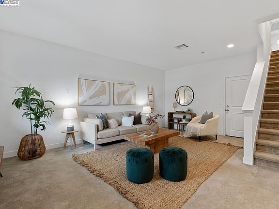Built in 2018, this Luxurious Alameda Townhome is a perfect embodiment of luxury and upgrades. As you enter from the street level, a covered front porch welcomes you, leading to an inviting entryway. The spacious 2-car garage is truly impressive, boasting impeccable features such as an epoxy finished floor equipped with 240V outlet for EV Charger. Moving to the heart of the home, the well-appointed kitchen is a true delight. It features gray quartz countertops, elegantly complemented by dark cherry cabinets. The herringbone tile backsplash adds a touch of sophistication, while the modern finishes tie everything together seamlessly. You'll find high-end stainless steel appliances, along with a GE glass induction cooktop, ensuring a top-notch cooking experience. You'll discover a convenient laundry room equipped with a reliable high-end washer and dryer on the 3rd level. A second bedroom with its own en-suite bathroom, perfect for accommodating guests. The master bedroom boasting its own en-suite bathroom for added privacy and comfort. Situated in a prime location, this townhome offers the convenience of being within walking distance to Park St. You'll also have access to great schools in the area and easy transportation options with proximity to the Park St Bridge.