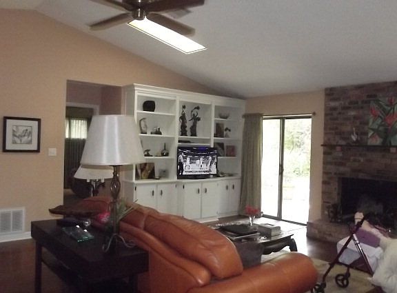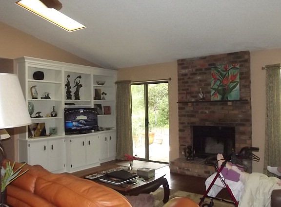 Cool house in the bay side area of Spanish Cove! Very Frank Loyd Wright. 3 Bed/2Bath. Large covered front porch. Sunroom on front side. Large oaks in back yard. Fireplace, wood floors, great built in's. Spanish Cove amenities include year round pool, 2 clubhouses, tennis courts, fishing pier & 24 hr security.