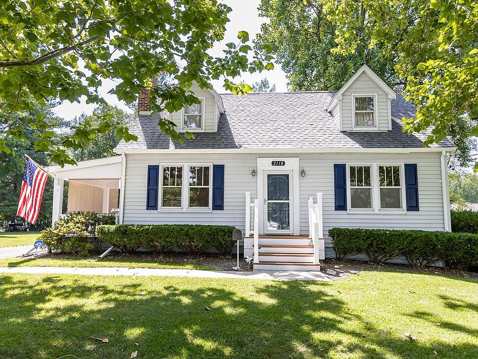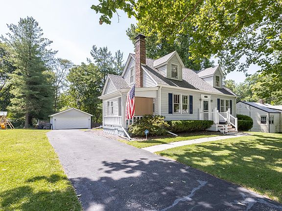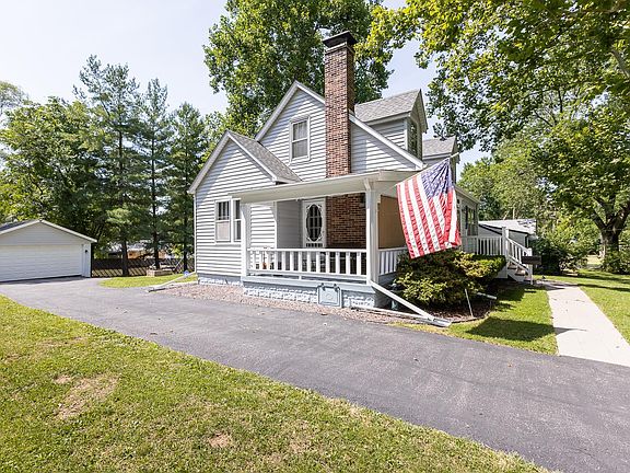 You'll fall in love with this Cape Cod Style home on almost 3/4 of an acre and its MANY updates! The open floorplan boasts a completely UPDATED Kitchen that is open to the Dining Area. The Brand New kitchen has gorgeous butcher block style counters, subway tile backsplash, grey tile flooring, decorative shelving, 42" cabinets and pantry space too! The Refrigerator, Gas Stove, Dishwasher and Microwave stay. You'll also see the adorable coffee bar in the Dining Rm as you look over the breakfast island pass-thru. The spacious Living Rm has a wonderful wood burning fireplace. Just off the LR you can step out onto the charming covered deck. The Master Bedroom is on the main level with two large bedrooms on the upper level with new carpet. The basement is finished with rec, bonus and laundry (washer/dryer stay) rooms. Plus, it is plumbed for an extra bathroom. You'll enjoy the double lot, 2-car (20x20) garage, firepit and playset too! BRAND NEW Furnace and A/C (Nest thermostat stays)!!