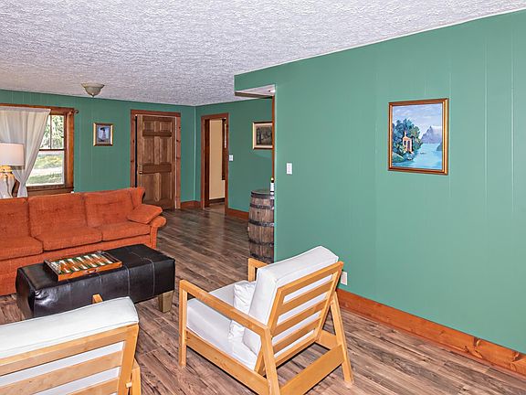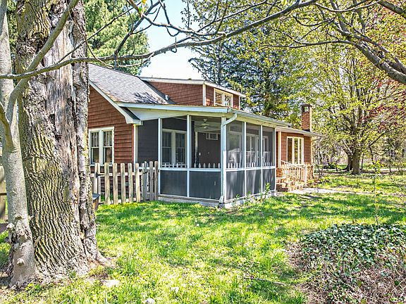 Enjoy living on 7 acres of property in a private setting with a large spring fed pond and a Koi pond in the front yard. This charming farmhouse offers 4 bedrooms, 1.5 baths, and a huge garage/pole barn. Beautiful hardwood floors throughout. Cozy living room with gas fireplace, spacious kitchen with wood beam accent, and dining area. Expansive decking and covered porch with exit for dog run. There is a large pole barn/garage that has two doors which are perfect for parking vehicles, boats, and toys. Also, the vintage red barn is for additional storage. Home improvements are new hot water, a new AC unit, a new water softener, a new septic system, interior paint, removing old tiles and refinished wood flooring upstairs, and adding a pier in the pond, strong Internet available via Starlink.