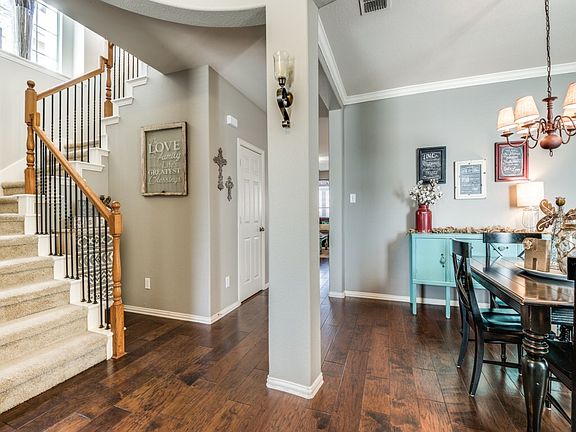 Beautiful LoneStar-Ranch home w-arbor coverd bckyrd patio dining area. Spacious home with formals, Game-Media-Family Living rooms. Fresh paint and recently added wood flooring. This brick & stone home features mature landscaping, stepped elevation & pattern concrete. Kitchen plumbed for gas, island bfast bar & lots of cabinets. Great interior lot in Saddlebrook of LSR. LoneStarRanch boasts the finest amenities -clubhouse, parks, pools, workout, hike & bike, & more. Exemplary Frisco ISD schools