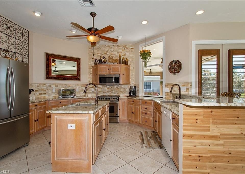 H.14334 - If you like outdoor space this ones for you! More than 1,500 sq. ft. of terraces perfect for entertaining. Nestled among neighbors but quite private and serene. A must see in person to appreciation the spectacular outside area. Upgraded kitchen is open to the family room and tile flows through out most of the home. Gorgeous granite and prep island with granite composite sink and second garbage disposal. A large pass through window makes outside entertaining a breeze and the lake views can be seen from the kitchen, family room and living room. The master suite in this split plan has 2 walk-in closets, and a huge bath. French doors lead to the covered and screened in lanai. The guest bath doubles as a pool bath and there is a powder bath for dinner guest. Several windows/doors have been upgraded to hurricane impact and a new roof was put on in 2018 give peace of mind with this home. Exceptionally maintained and spotlessly clean are a delight while showing. Back yard has been completely fenced and is perfect for kids or pets. Great location, near back gate for easy access to Livingston road. Imperial Golf Club with 2 full 18 hole courses.Memberships not optional