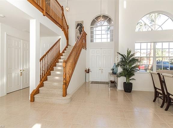 Premium lake front lot with Southern Exposure and terrific Ibis model home. This wonderful residence offers a very light and bright feeling upon entry, volume ceilings of 20' in the downstairs living areas, tile floors throughout. The lovely Master Suite is on the first floor with a door leading out to the lanai, pool and spa. The Den offers custom built-ins and a great work space. Upstairs are 3 spacious bedrooms with a bathroom which all lead downstairs with a solid wood railing. The lanai is perfect for entertaining with paved decking, the expansive open lake view, pool and spa. Other features include: new roof (2018), new A/C (September 2017), new hot water heater (August 2017), all new light fixtures and fans throughout the home, new tile flooring upstairs in all bedrooms, California Closets throughout, granite counter tops, Honeywell wireless fixed temperature heat detectors & glass break detectors, new fencing surrounding the pool area, new landscaping & privacy hedges. Saturnia Lakes offers fabulous amenities including several pools, fitness room, dance studio, 4 clay tennis courts, billiards room, saunas, playground, basketball & more.