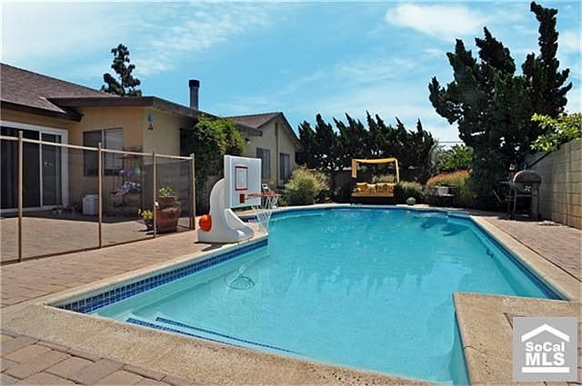 Spacious and move-in ready, this single story pool home features an open floor plan with great room design, bamboo/tile flooring, vaulted ceilings, remodeled bathrooms and two fireplaces. The huge lot has plenty of room for a sparkling pool with built-in spa feature and child fencing, pavered patio, RV parking and separately fenced dog area. Relax with the privacy of a small community while enjoying the benefit of close shopping, freeways and schools.