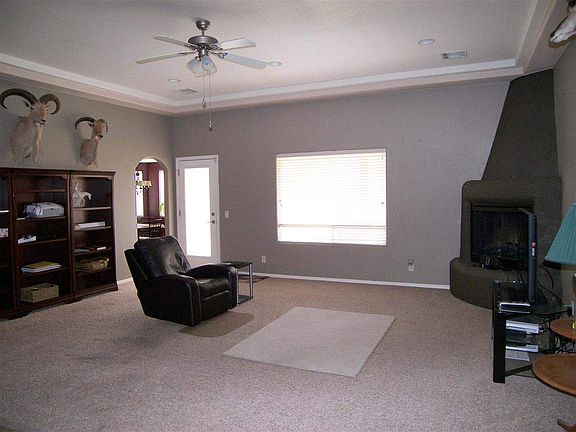 Southwest Style Home with a beautiful front yard court that leads into a 1911 sq ft home. Built in 2006 with 3 bedroom, 2 bath, eat in kitchen as well as an extra room that could be a formal dining room or den. Kiva fireplace in living room. All appliances will stay. Split floor plan. Separate shower with a jet tub in Master Bath. Central Vac. Garaged cooled. Gated side yards for parking. Wired for security system. Lots of little extras.