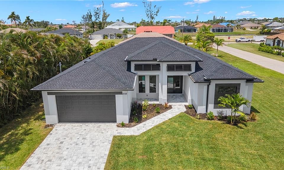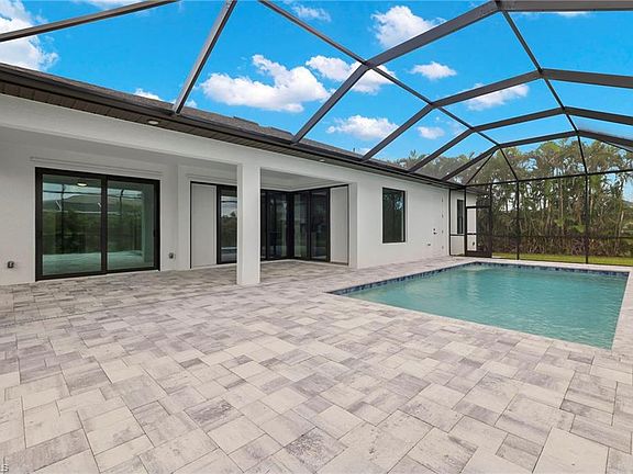 Discover this exquisite new home in SW Cape Coral! Crafted with meticulous attention to detail, it offers an open floorplan that seamlessly blends elegance and functionality. An oversized family room with a custom fireplace and expansive sliders fills the space with light. The gourmet kitchen boasts high-end stainless-steel appliances, quartz countertops, and a stylish waterfall island. The split bedroom layout ensures privacy, with a generous owner's suite featuring a luxurious bath. Two additional bedrooms and a full bath offer space for family or guests. Step outside to the screened lanai, accessible from the family room, master suite, and second bath. Spend time on the stunning lanai or relax in the stunning custom pool. This modern masterpiece embodies luxury living. Experience comfort and sophistication in this remarkable new home. Location is key and this home puts you in the center of everything important. Check out this beautiful home today.