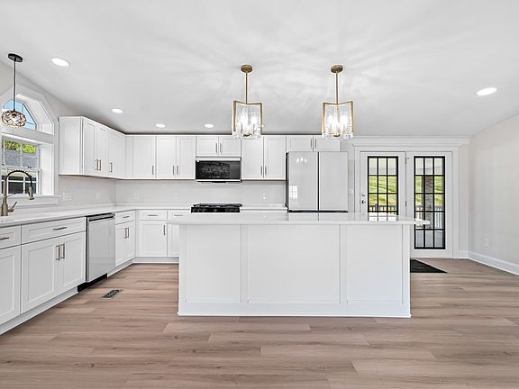 STUNNING, SPACIOUS & MULTI-FUNCTIONAL! Completely remodeled down to the studs, this 3-bedroom home impresses with exceptional craftsmanship and a fabulous primary suite featuring a walk-in closet and luxurious spa bath with double vanity, soaking tub, water closet, and walk-in shower. The custom kitchen showcases shaker cabinetry, quartz countertops, deluxe appliances, and an oversized island with bar seating. An inviting living room with stone-surround gas fireplace, formal dining room, main-level laundry, and half bath complete the open, bright layout. The full framed and drywalled basement offers endless potential for a workshop, home gym, or future finished living space. Nestled on a private 2+ acre lot, enjoy a huge covered patio and an incredible 8-car detached garage with heat, electric, water, storage, and half bath. A charming 1-bedroom cottage with full kitchen, bath, and laundry provides rental income, guest accommodations, or in-law living. Truly a rare find! WELCOME HOME!