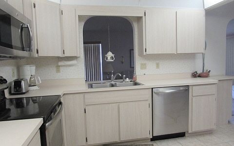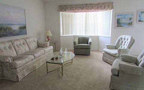 This Villa is spacious, has a nice family room, new carpert and being sold furnished. The one car garage is larger than most, at 14 x 24. The kitchen offers two openings, and is spacious. Located a block from clubhouse. Only one owner.