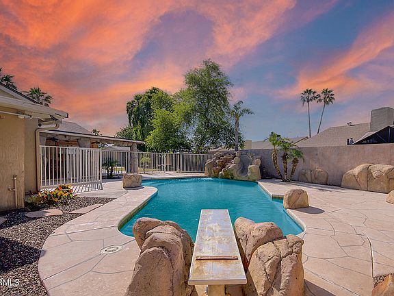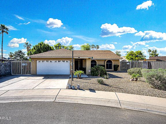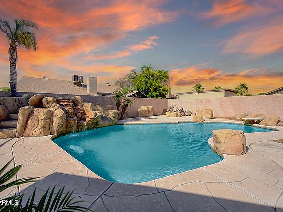 Don't miss this gem in a great location with over a 12,000 sq ft lot and no HOA! RV gates on both sides of the house. Marble countertops and custom-installed cabinets throughout. Newer roof and AC. New three-step, two-tone epoxy flooring. Fans in every room. Casita guest house in backyard is fully shingled, electric, lights, AC, carpeted, and livable for extra room or guests. Diving pool with waterfall and water slide. Backyard has three types of citrus trees with full drip system throughout. Southside has three $25K Ficus trees for full shade. Patio is custom built with rock pillars, western wooden ceilings, and fans. Patio has a full wrap-around mist system and speakers built into ceiling for surround sound. 16 camera closed circuit security system conveys. Come see it today!