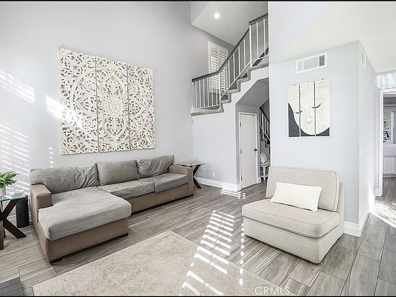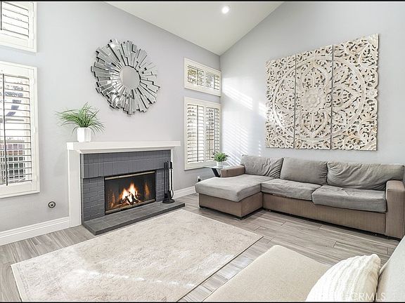 EXCEPTIONAL END UNIT TWO-STORY TOWNHOUSE STYE FLOOR PLAN PERFECTLY LOCATED ON THE PERIMETER WITH DRAMATIC SUNSET VIEWS! Spacious end unit floor plan offering a gated courtyard with tastefully landscaped planters. Large foyer leading to the spacious living room with two-story ceilings, fireplace and dining room with glass sliding door to the large patio with planters and plenty of outdoor space to enjoy the views and privacy of this amazing property. Awesome kitchen has been completely remodeled with designer cabinets, Quartz countertops, farmhouse sink, designer faucet and backsplash, stainless steel appliances including the high end exposed hood, recessed lighting and a large breakfast nook. Upgraded flooring and baseboards, upgraded dual glazed windows and sliding door, custom plantation shutters, upgraded HVAC system, added/upgraded lighting fixtures, bathrooms with upgraded Quartz countertops and upgraded fixtures including the master bathroom featuring a large vanity with dual sinks, upgraded Quartz countertop, totally remodeled walk-in shower with designer tile, frameless glass enclosure and upgraded fixtures. Oversized two-car attached garage with plenty of room for storage and an amazing end unit location, nearby parks and recreation and resort style community pool, spa, tennis, basketball, clubhouse, ..excellent proximity to shopping, easy freeway access to 5 and 405 via Bake Parkway and nearby hiking and nature trails!