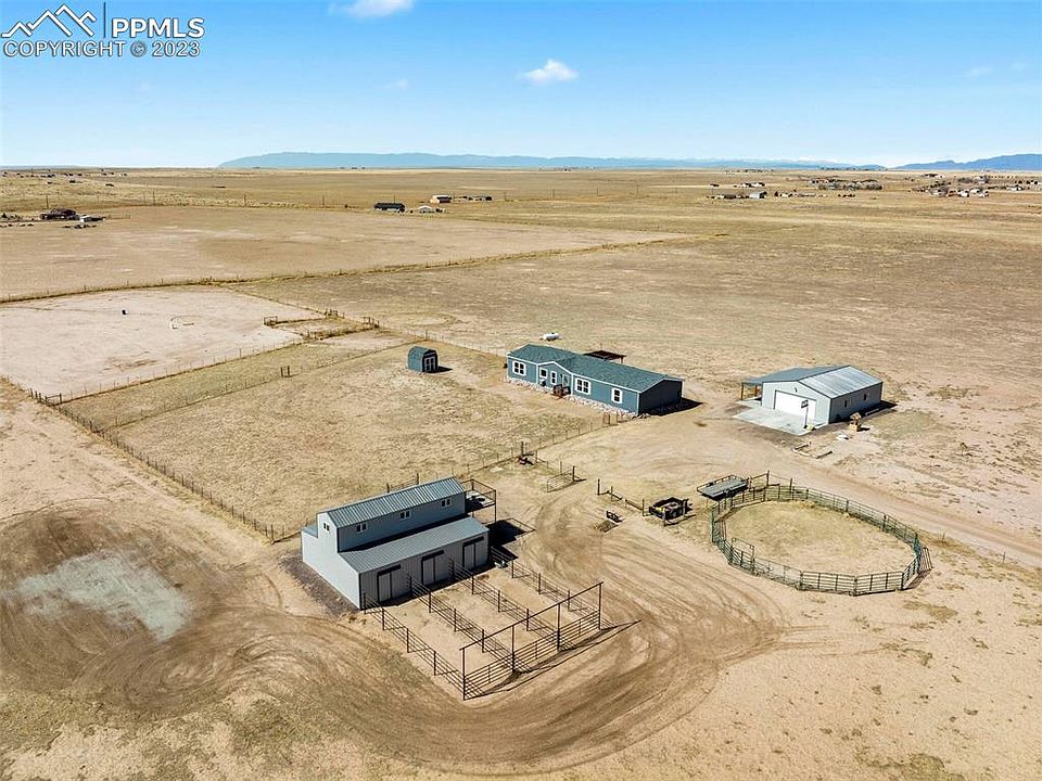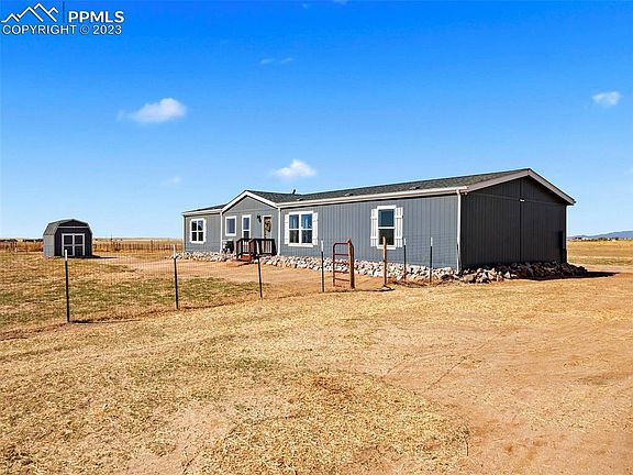 Wanting to get started on your Colorado Dream of a Home on the Range? The time is now to come and take look at this fantastic rural property ready for humans and animals. Room for all to grow and thrive. The home is a modular home constructed in 2017 by Clayton Homes. With four bedrooms and 2 baths, the home is feels very spacious and livable. The floor plan is open and the use of fresh and updated materials makes the space welcoming, open and cozy all a the same time. Here are a few of the upgrades throughout: Gutters and roof in 2022 * Exterior painted in 2022 * New paint throughout house *New baseboards throughout house *Refrigerator, stove, dishwasher 2021 *Horse move in ready, includes horse feeders, water troughs and round pen *X2 Woodford water hydrants x1 runs to the barn * Fully fenced 37.5 acres with gate. East and West fenced lots, Dry lot and small integration pen. *30’x40’ Shop with 12’ lean to built in 2020 with concrete apron *30’x40’ Barn built in 2022, 10x12 stalls with 40’ continuous runs * Shop pallet racks included * Shop freezer included * RV power hook up on North side of property. Come and see how fresh country looks and feels. Less than 30 minute drive to Colorado Springs and convenient to Shriever and Peterson. Shopping and restaurants accessible with with just a brief drive. Live your life on your terms with big mountain views and space to breathe.