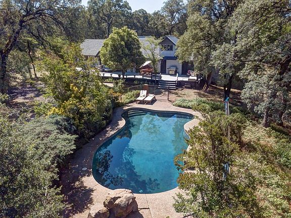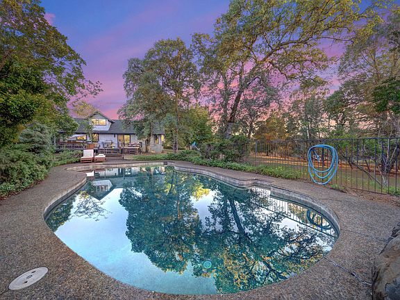 This property has it ALL - OWNED solar, a studio apartment above the 4 car garage, a Gunite black bottom pool, a hot tub & almost 5 acres of tree studded, level land - all in a great neighborhood! This custom home has a unique mountain property feel to it with a double prow of windows on either side that takes in views of the property and its trees and wildlife. The main house is aprox. 2400SF & has 3 bedrooms plus a finished attic that has been used as a 4th BR (could also be an office or bonus space). Kitchen has been completely remodeled with quartz counters and stainless appliances. Enjoy the relaxing free standing tub and pebble bottom rain shower in the master with easy access out the slider to the hot tub. In-law provides potential income and there are several storage sheds as well!