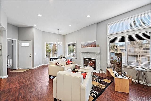 This upper-level condo in the highly sought Rainbow Ridge is a perfect starter home. The open floor plan includes a large dining and living space, cozy fireplace, and upgraded kitchen. The unit features central AC, heat, and lots of natural light. Rainbow Ridge has access to a private park, large heated pool, spa, and you'll be in close proximity to Lake Mission Viejo.
