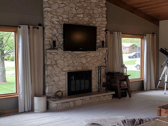 This is a must see! Very open floor plan. Very unique vaulted wood ceilings. Lots of natural light. Small deck with pergola off kitchen overlooking fenced part of yard. Park-like setting. Cozy living room with stone gas fireplace. All new: kitchen, baths, lower level, paint, and carpet. Back roof (2010), front roof (2015). city water has been brought to front of house. Plumbing has been installed for wet bar in lower level. Don't miss this one!