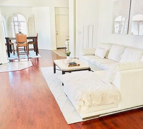 Welcome to this amazing 3-bedroom, 2-bathroom home tucked away in a peaceful cul-de-sac. This property offers the perfect blend of comfort and convenience, with easy access to shopping, dining, and major highways just minutes away. Inside, you'll find updated floors that bring a fresh and modern feel to the space, custom shutters, adding both style and privacy. The vaulted ceilings create an open and inviting atmosphere, and the well-thought-out layout ensures functionality and flow throughout. Step outside to discover a beautifully landscaped backyard oasis, perfect for outdoor gatherings or simply enjoying a quiet moment!