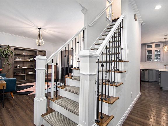 Located in the highly desirable Barrington Estates, this 4 bedroom 3.5 bath home is what you are looking for. 9' foot ceilings and many updates. Covered entry leads to open foyer that features stairway with wrought-iron balusters. Kitchen has farmhouse sink, quartz counters and stainless steel appliances. Natural light from large windows and doors to deck give great room the warmth you enjoy . Opposite side of kitchen is large formal dining room with attractive wainscotting and crown molding. Need more room? Formal living room provides entertaining, music or study. Hardwood flooring through out main level. Upstairs has nice size bedrooms. Owner's suite includes massive adjacent closet with custom built-in shelving. Plenty of room for dressing and exercise. Convenient mudroom/Laundry off garage. 9' ceilings in lower level. Complete with 4th bedroom and a full bath which has custom tile and walk-in shower. Walk-out to your flower beds or outdoor activities. All measurements approximate.
