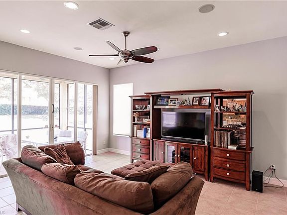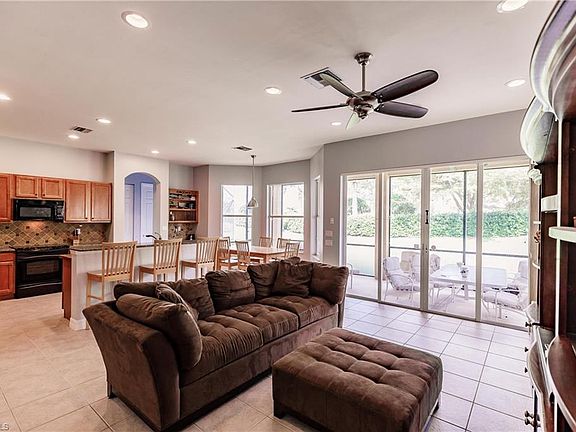 Spacious 5 bedroom, 4 bath, "Osprey" floor plan in Saturnia Lakes. Ground floor features living & dining rooms; well-lit kitchen (with breakfast nook) open to large family room, with sliders to the lanai. There is also a 5th bedroom, full/pool bath, and den on the first floor. Large second floor master suite with separate study/sitting area/exercise room, two walk-in closets, and his and hers bathrooms. The laundry room is located on the second level along with 3 additional bedrooms and bath. Upgrades include side entry two-car garage, granite counter tops, wood flooring on second floor, and new Trane HVAC systems (two).